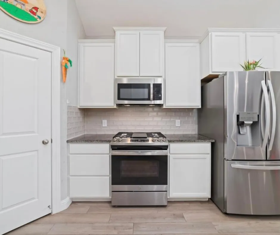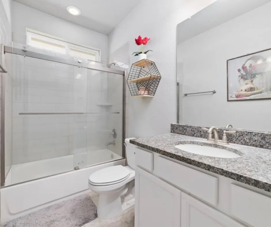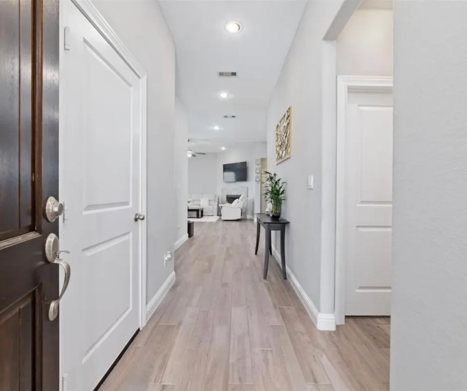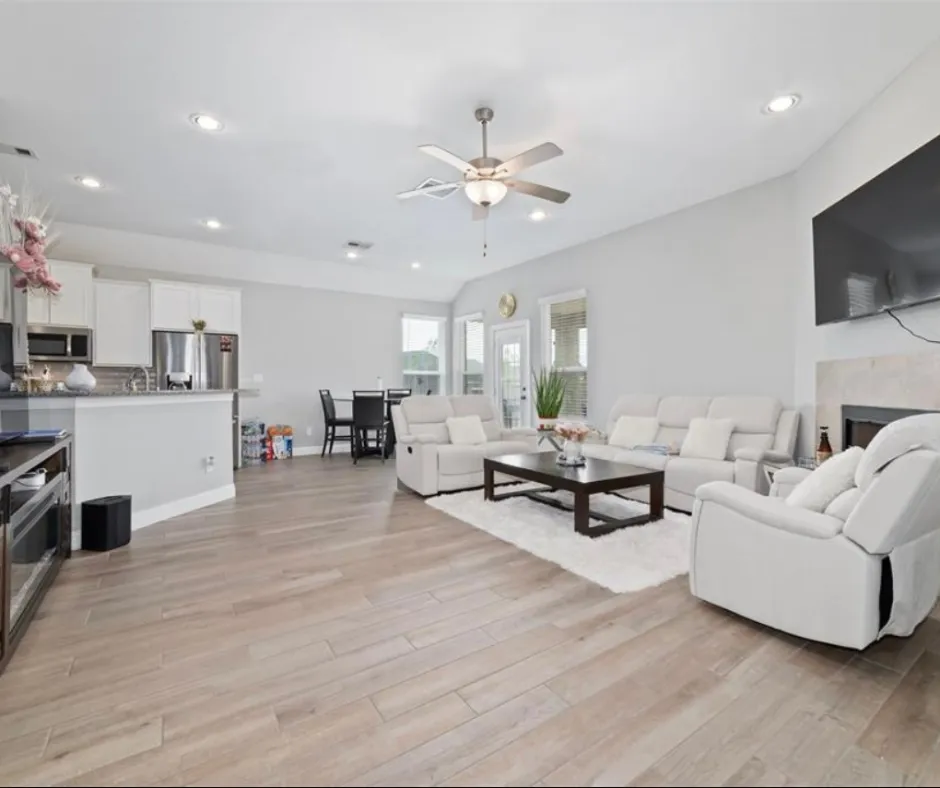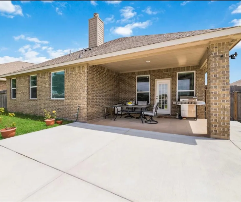 This well-designed 3-bedroom, 2-bath home features an open-concept layout with wood-look tile flooring, granite countertops, and space for a full dining area. The kitchen includes a walk-in pantry and is perfect for everyday living and entertaining. The private primary suite offers a spacious closet and an ensuite with dual granite vanities, soaking tub, and separate shower. Enjoy an oversized, fully fenced backyard backing to a permanent easement for added privacy, plus a covered patio ideal for relaxing or hosting. New AC (2025) and fresh paint complete this must-see home.